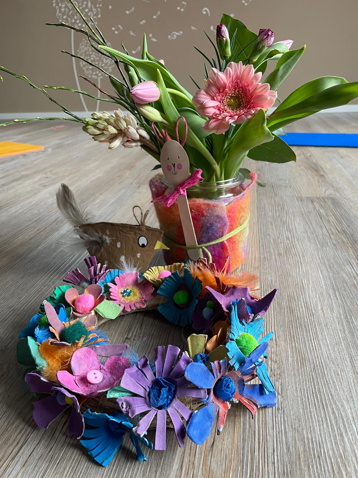Bei diesem Angebot handelt es sich um einen Bastelkurs für Eltern und Kinder ab 15 Monaten. Zu einem bestimmten Thema, meist jahreszeitlich, darf nach Herzenslust gewerkelt werden. In der Regel kommen verschiedene Techniken (z.B. kleistern, malen, falten, modellieren usw.) zum Einsatz. Viele Ideen können mit nach Hause genommen werden.